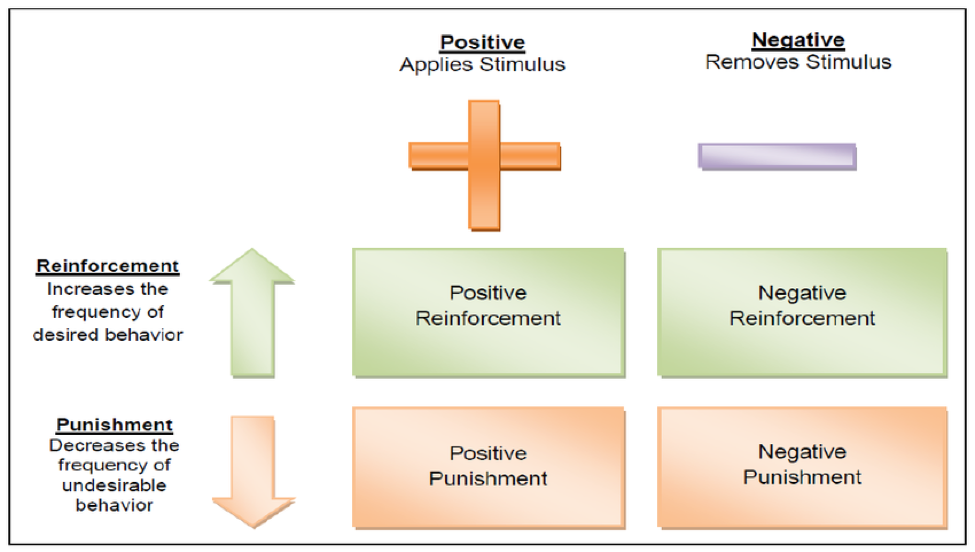 The terms “positive” and “negative” reinforcement are often misconstrued in the media and made to sound like “negative” is a bad thing. However, when it comes to reinforcement, positive and negative do not mean good or bad.